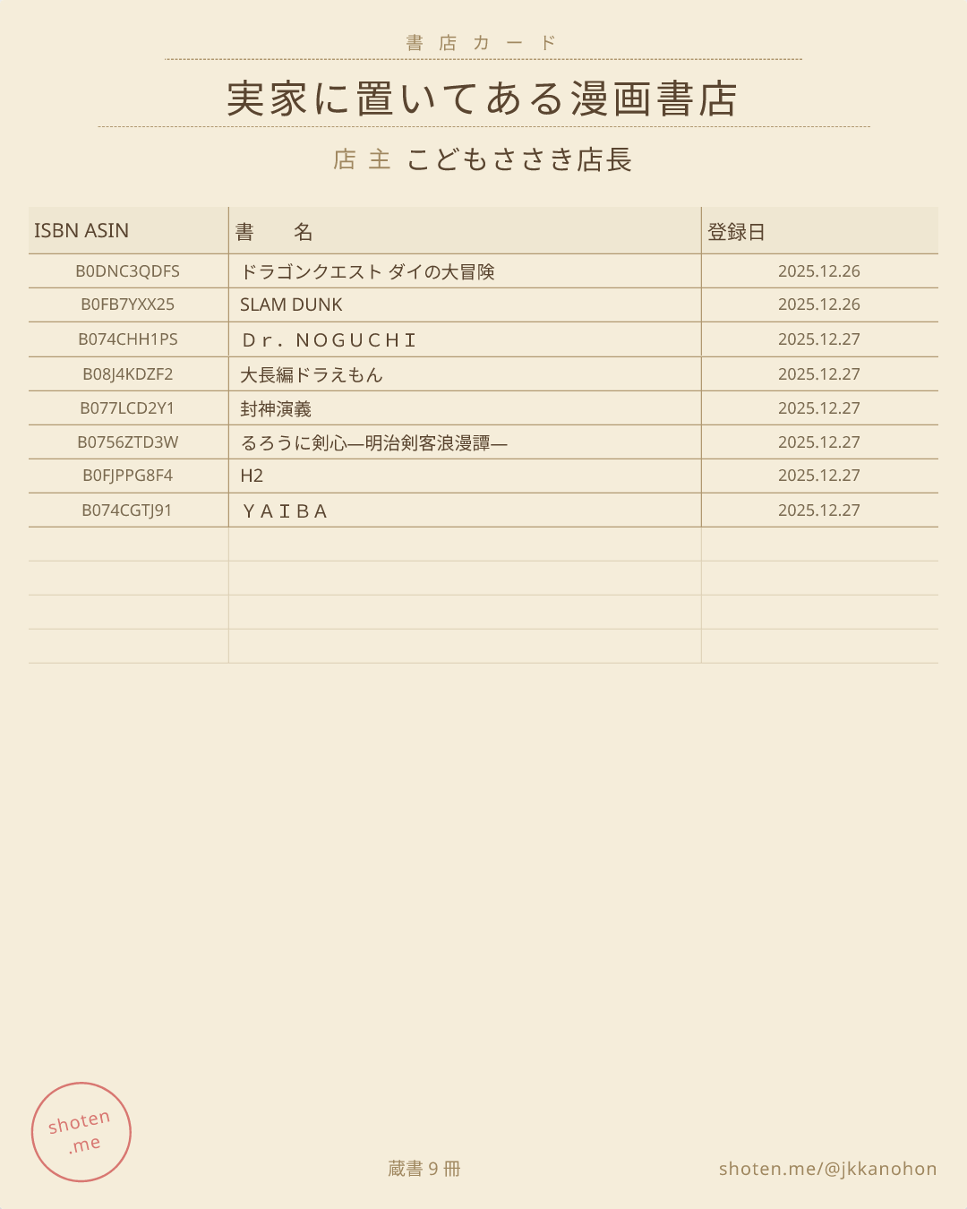 実家に置いてある漫画書店 のシェア用カード